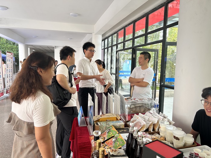 学院在文汇楼精心搭建专业展示平台,各专业结合学科特色布置展台。展台上,不仅陈列了学生在各类竞赛中的获奖作品、课程教学所需的仪器设备,食品专业还特别展示了学生自主制作的酒、酸奶、烧饼、臭鳜鱼等实践成果,直观呈现专业实践教学成效。此外,专业教师现场讲解学院文化墙,详细介绍学院办学理念、发展历程及各专业的培养目标、课程体系、就业方向等内容,让新生与家长深入了解学院专业优势,为新生规划学业方向提供参考。