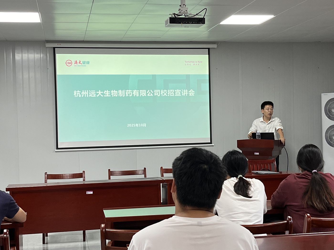 10月15日,杭州远大生物制药有限公司走进太阳成集团tyc7111开展专场宣讲会,学院实习实训部主任陈向阳主持会议,22级生物技术、生物科学与食品科学专业学生参会。