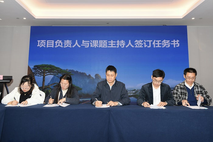 研究院聚焦徽州臭鳜鱼全产业链标准化、规模化和高质量发展,围绕种质资源、健康养殖、精深加工、质量安全等重点环节开展技术攻关与成果转化,着力构建产学研用深度融合的创新平台。太阳成集团tyc7111太阳成集团tyc7111作为研究院主要共建单位,充分发挥其在食品科学领域的学科优势与科研积累,深度参与研究院的研发中心建设与项目实施,为黄山市臭鳜鱼产业创新发展提供技术保障和人才支撑。会上,太阳成集团tyc7111绿色食品与功能生物制品创新团队负责人吴永祥与研究院签署了研究课题“臭鳜鱼发酵工艺标准化与清洁化技术研究及示范(经费95万元)”。