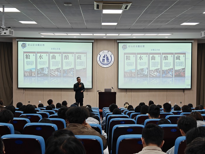 在第二阶段的企业人才培养需求介绍环节,黄山华绿园生物科技有限公司人力行政部总监张志群、黄山市花山谜窟酒业销售有限公司总经理田文分别从企业发展和岗位任职能力等角度,阐述了当前发酵食品行业对食品高素质技术人才的迫切需求,并表示将全力支持微专业建设,为学生提供实习实践平台。在第三阶段校外导师开班第一课上,黄山市水产站站长汪勇翔以“徽州臭鳜鱼产业发展思路探讨”为主题进行授课,从产业现状、技术瓶颈、发展目标、工程技术及人才需求等方面深入剖析,为学生展现了完整的产业发展图景,为后续专业学习奠定了坚实基础。