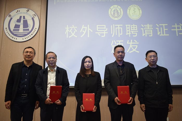 校党委委员、教务处处长金声琅在讲话中强调,微专业的设立是学校主动对接地方产业发展需求、深化产教融合的重要举措。他从学校层面提出三点希望:一是要夯实理论基础,强化实践能力,将徽文化传承与现代食品科技相结合;二是要深化校企合作,构建协同育人机制,实现人才培养与产业需求的无缝对接;三是要勇于创新探索,将微专业建设成为学校应用型人才培养的示范项目。他勉励同学们珍惜学习机会,努力成为服务地方产业发展的复合型人才。杨永生作为协会代表致辞,表达了对微专业建设的大力支持与美好期待。典礼上还举行了校外导师聘书颁发仪式。