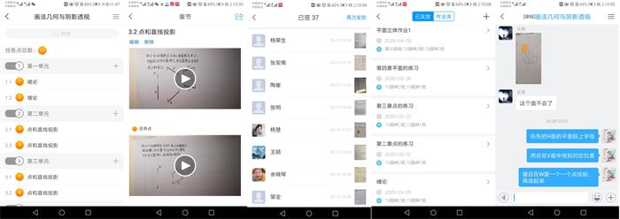 《画法几何与阴影透视》课程一直以来都是利用课程教学PPT和板书进行教学的,课程本身就需要学生具备很好的空间想象能力,网络直播课程难度较大,因此采用网络平台的课程视频进行教学,学生可以反复观看;教师利用超星平台发布学习任务点和相关习题视频帮助同学学习;利用打卡和作业来把握监管学生学习质量,利用学习通和QQ学习群与学生互动,帮助学生解答学习中遇到的困难。