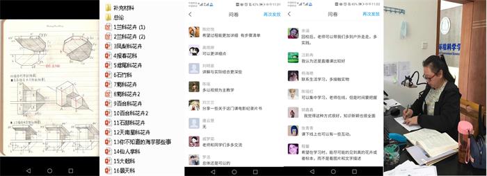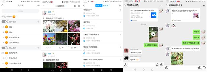 《花卉学І》课程是园林专业的专业必修课程,理论课程中有大量的花卉图片,崔老师给学生们推荐了教育部的精品课程进行学习;教师利用超星平台发布学习任务点和主题讨论,增强学习的趣味性;利用拍照打卡和作业来了解学生学习状况,利用微信学习群与学生互动,互动除了常规的知识点解答外,还利用课余时间在校园里录制一些花卉的视频,发布在学习群中,让大家通过网络感受学院春天,加强同学对花卉特点的辨识认知。由于网络课程中讲解知识点比较多,崔珺利用“腾讯会议”APP给同学进行花卉专题的直播讲解,进一步拉近了老师与学生的距离。