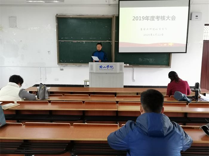 4月22日下午,我院在文渊楼1205教室召开2019年度考核大会暨安全稳定工作会议,校综合考核组第五组成员总务处处长胡斌、我院党政领导及全体教职工参加会议。会议由院党委书记吕顺清主持。