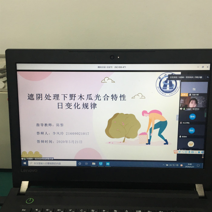 网络视频答辩中,同学们用PPT汇报的形式做毕业论文(设计)的答辩陈述,详细介绍论文(设计)的研究内容,主要观点、创新之处等等,并认真回答答辩老师的问题。答辩老师就同学们的毕业论文(设计)做进一步的指导,提出指导意见,要求同学们在原有的基础上修改完善。整个网络视频答辩过程,内容丰富,秩序井然,效果很好。16生技班的张建辉同学表示,线上视频答辩超出预期,答辩老师都很负责任,认真的指出自己论文的不足,很感激老师们辛勤指导。16食品班葛天嗣同学表示,相比于线下答辩,线上答辩的气氛更轻松,能够更加清楚地表达自己的想法,只是对着电脑回答问题有时会觉得很尴尬。生环院钱丽萍教授说,今年是疫情原因我们采用了网络视频答辩,但这种答辩形式优势很突出,今后线上线下相结合的论文(设计)答辩形式,将成为我们的发展趋势。