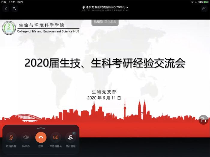 6月11日晚,生物党支部线上举办了2020届生技生科考研经验交流会,生物支部师生党员,2016级、2017级生技、生科班共100余人参加了此次交流会。