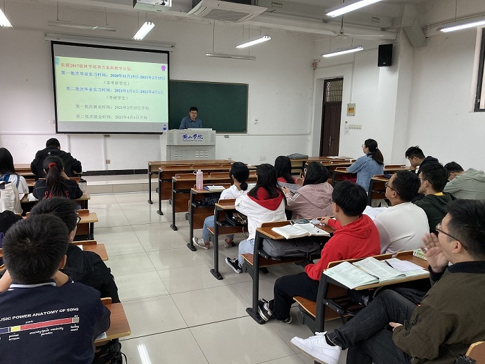 会上郑磊老师对《教育部关于加强和规范普通本科高校实习管理工作的意见》、《太阳成集团tyc7111教学实习管理规定(修订)》等文件进行了解读,逐条讲解了实习要点,并就集中实习与分散实习的区别对学生进行了具体细节的告知。郑磊老师要求学生们认真对待即将到来的实习,要保证时间、保证质量的进行,实习期间要认真书写实习日志,要多与指导老师进行交流。指导老师会与学生们通过微信、QQ等方式,每周进行互动,指导老师会针对在实习中遇到的各类问题,努力为学生们排忧解难。