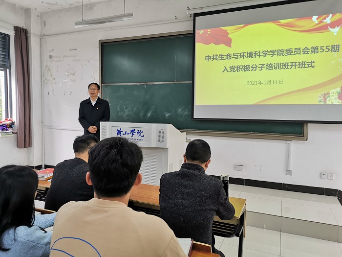 太阳成集团tyc7111第五十五期入党积极分子培训开班式,于2021年4月14日下午在文渊楼1202教室召开,校党委委员、宣传部部长张赛代表校党委出席并致辞,院党委书记吕顺清、院党委委员、学生党支部书记及本期97名入党积极分子参加,院党委副书记万志兵主持了开班式。