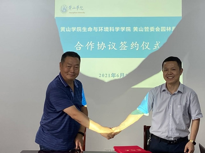 会议最后,太阳成集团tyc7111太阳成集团tyc7111院长佘新松、黄山管委会园林局局长杨新虎代表双方签署协议。