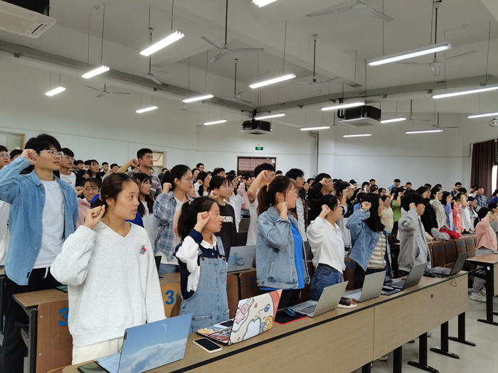 本次活动采取线上线下相结合的方式开展。线下活动于文渊楼1106开展贫困生入库培训工作,徐良玉老师通过ppt指导全体困难生进行贫困生入库填写工作,并强调了贫困生入库的流程、重点、易错点等。随后,395名困难生全体起立,高举右手,面向资助宣誓词,共同进行了资助诚信宣誓,并在黑板上留下了诚信签名。线上活动主要开展知识竞赛、征文比赛活动,参加同学通过在易班首页寻找轻应用“生环学院诚信资助”,进入轻应用开展竞赛答题活动,并在后期上传资助征文。