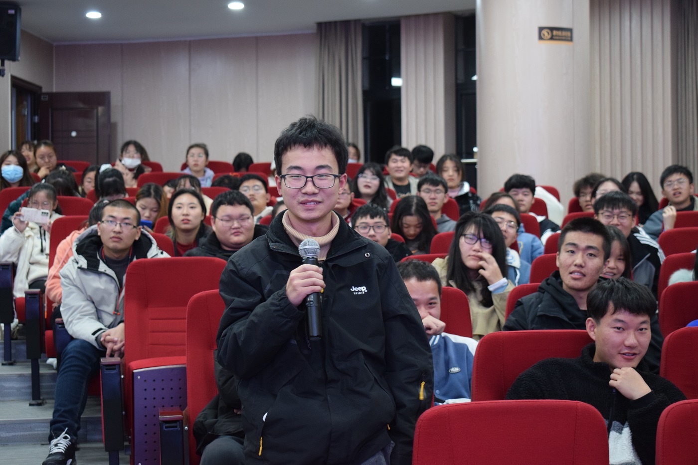 报告会上,徐良结合自身学习、生活、工作等经历,向同学们分享成功经验。他从心得、建议、能力三个方面给同学们指引未来学习生活的方向,并指出意志力、学习力、实践力是同学们学习生活中必不可少的要素。随后,徐良告诉同学们应该成为一个有目标的人,同时鼓励同学们在学校时要多读书,还向在场同学推荐《拆掉思维里的墙》和《高效人士的七个习惯》这两本书。报告会的最后,同学们就生活、情感、学业等方面向徐良学子提出自己的疑惑,徐良进行了详细的解答。