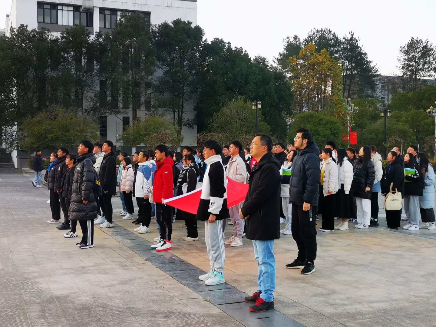 为进一步加强爱国主义教育,提高大学生的爱国意识,12月6日早上7点,生环学院在率水校区徽文化广场举行“升旗仪式”活动。院党委副书记万志兵、辅导员王宇及21级生物技术班全体同学参加本次升旗仪式。