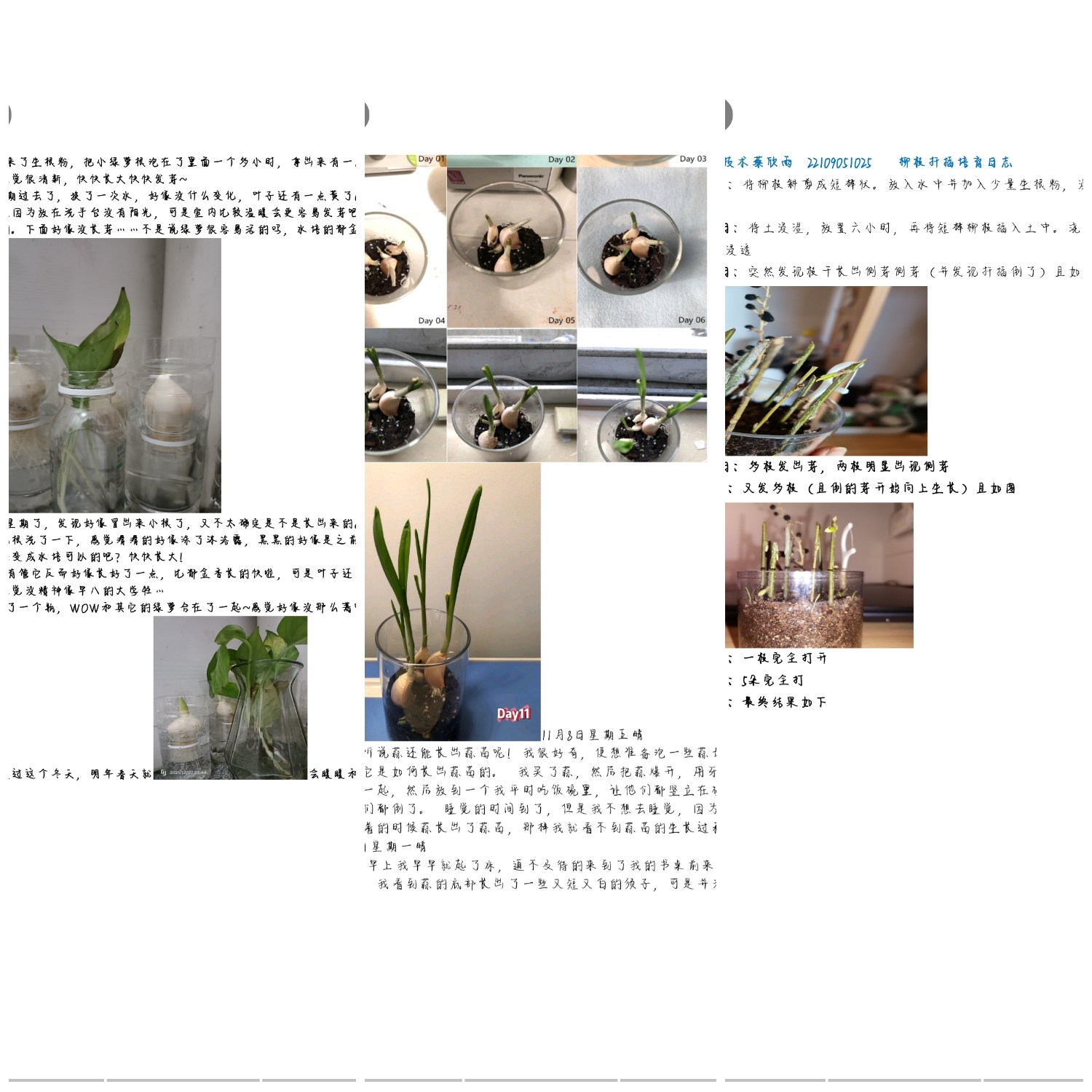 活动前期,参与者在文渊楼1205教室参加培训,并领取生根粉。活动中期,参与者在群聊中坚持每天以日记的形式发布扦插植物的状态,负责人也坚持每天在群里为同学们答疑解惑。活动后期,参与者将自己为期一个月的扦插活动日志进行汇总并发送至负责人的邮箱。