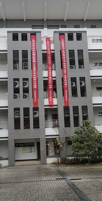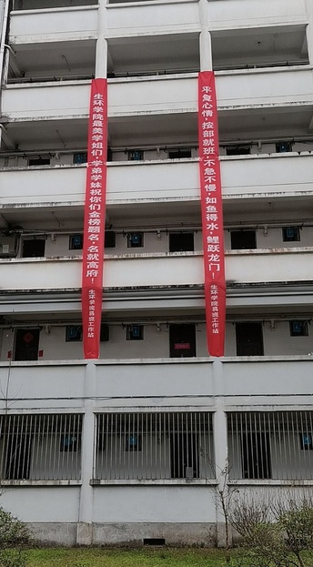 此次活动共分为两个部分。活动一为易班工作站人员通过在文汇楼,9栋、27栋毕业班宿舍悬挂横幅,以表达学院老师、学弟学妹对全体考研学子的祝福与关怀。