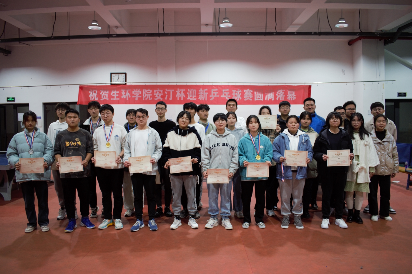 此次“安汀杯”迎新乒乓球赛旨在为学生提供一个互相交流、切磋球技的平台,也为学生提供一个展现自我、不断提高的机会。比赛也充分展现生环学院学生积极进取、勇于拼搏的精神面貌。
