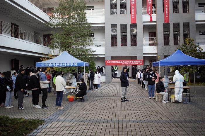 为落实安徽省2022年全国硕士研究生招生考试常态化疫情防控要求,做好学院考研学生服务工作,12月23日上午,生环学院邀请532医院于文汇楼为考研学子全体进行核酸检测。院党委书记吕顺清到场指导,院学生会、各学生党支部、易班工作站负责志愿服务工作。