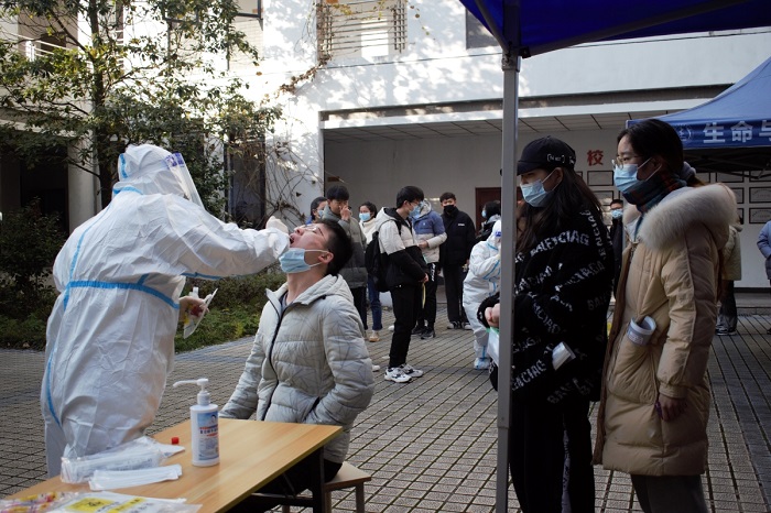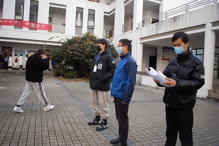 检测开始前,徐良玉老师指导志愿者对核酸检测场地、学生进入通道、检测流程等进行了布置、培训,并将志愿者按照组织员、引导员、分流员进行了分工,保障了整个核酸检测工作的顺利进行。