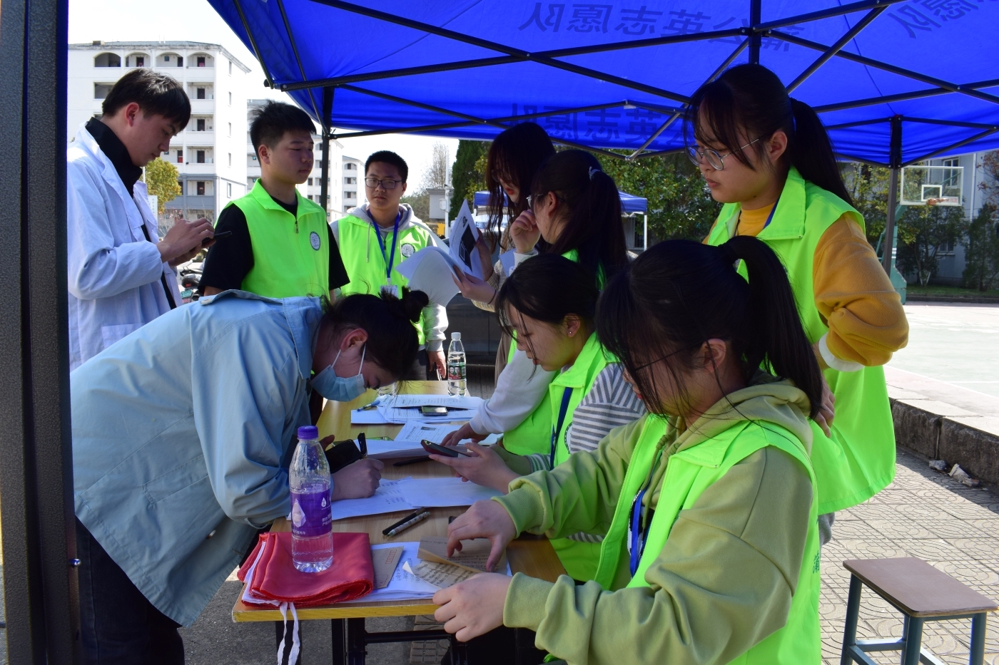 活动伊始,工作人员在一食堂篮球场前设立展台,等待同学们前来交作品。在活动过程中,同学们有序提交作品并进行现场签到,工作人员维持现场秩序。活动最后,工作人员评选出优秀作品并进行展示。