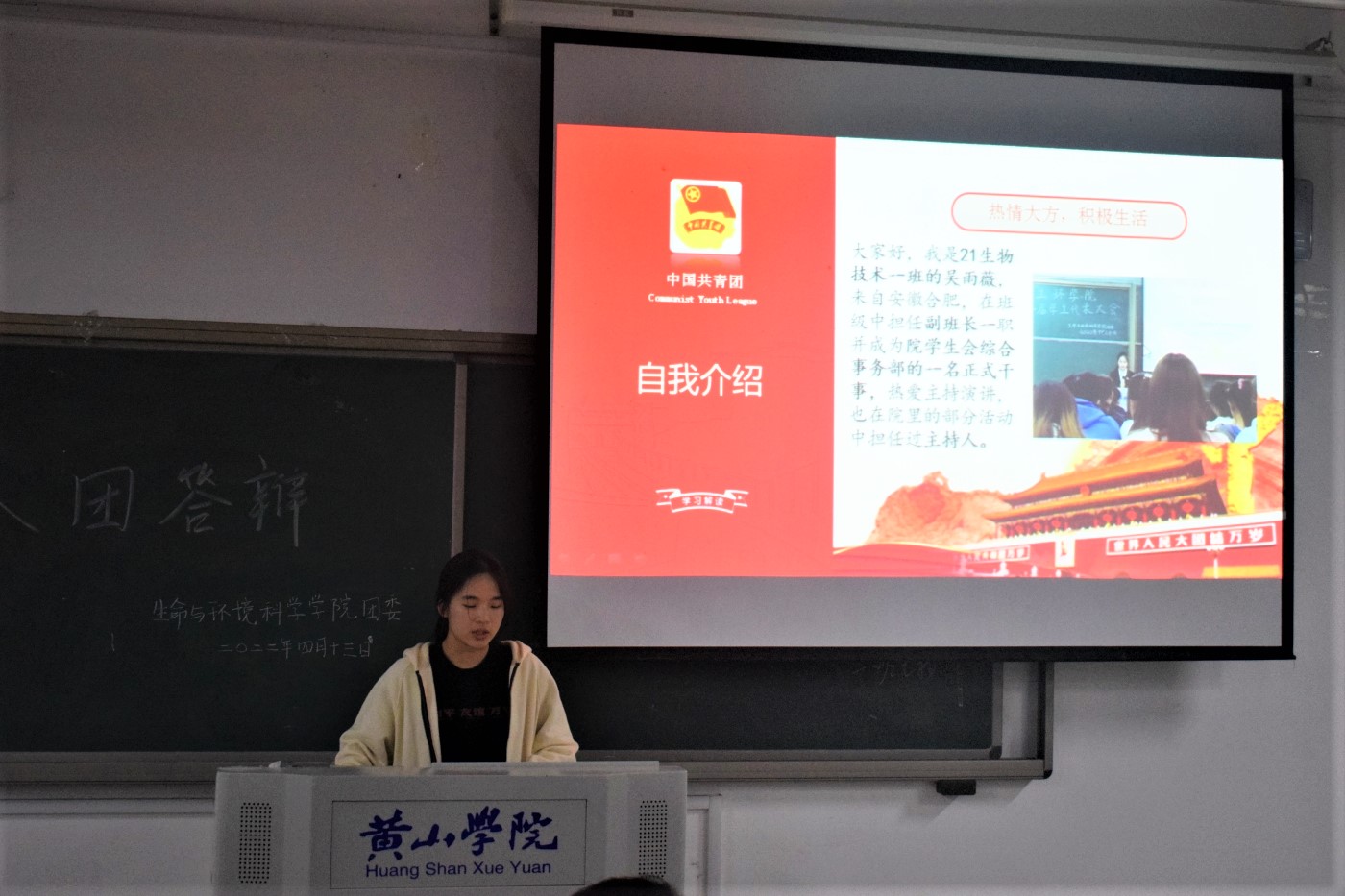 12名入团积极分子依次上台进行PPT演讲,他们分别从“自我介绍”“政治思想”“团员积极性表现”“之后的发展思想”四个方面进行汇报,表达出积极向团组织靠拢的迫切心情,并表示今后将不断提高自身综合素质,加强理论学习,严于律己,做有思想有本领有担当的新青年。