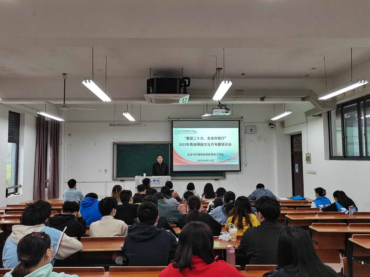 为进一步丰富我院易班网络文化建设,落实校易班发展中心《关于开展“喜迎二十大,安全伴我行”主题易班网络文化活动月的通知》,4月13日下午,生环学院易班工作站于文渊楼1304召开了易班网络月专题培训会。生环学院党委副书记万志兵、团委副书记王秋阳、易班指导老师徐良玉,辅导员王宇、刘璇、梁金鹏、杨蒙,校、院易班工作站人员及各班易班班长参加会议。会议由徐良玉主持。