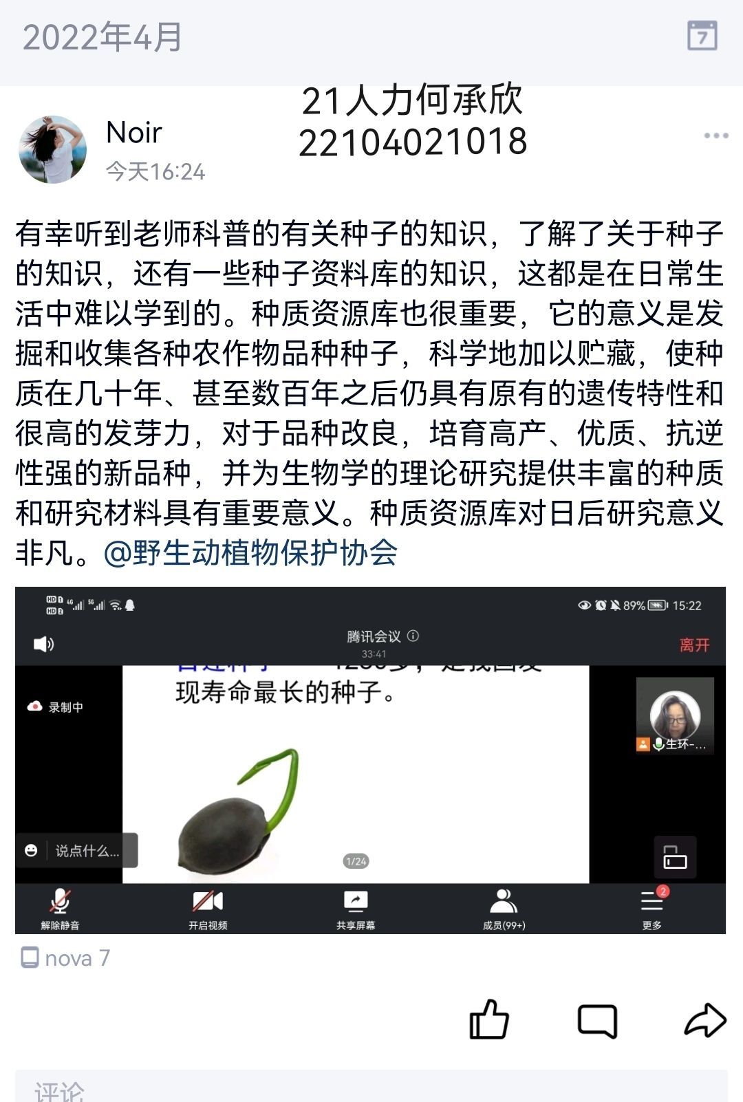 本次活动由教师俞英主持,俞英通过线上平台为同学们讲解植物的相关知识。参与者在规定时间内进入腾讯会议,观看俞英的直播,直播结束后同学们在群内发表自己对植物知识的认知与感悟。