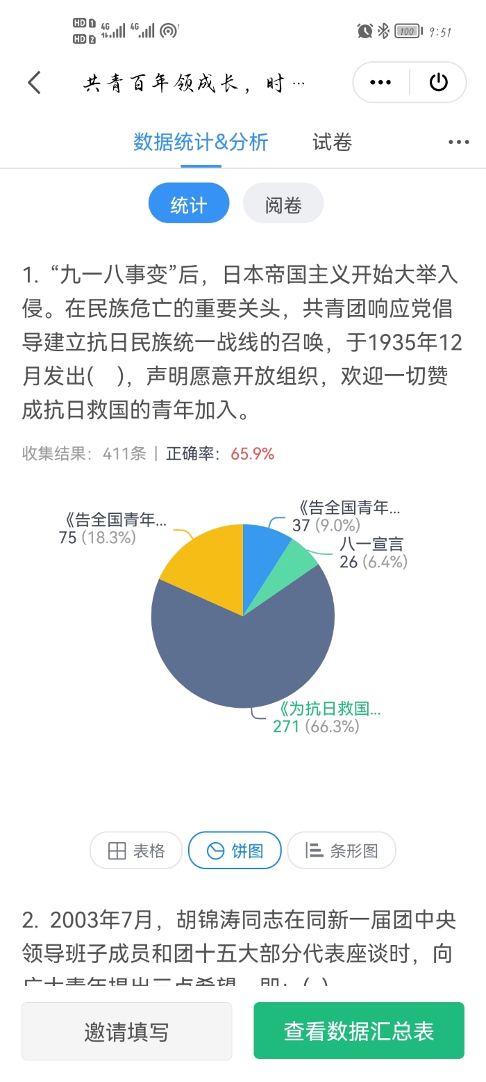 活动伊始,参与同学们在规定时间内进行团史答题然后将答题完成页面截图并加上水印后,发到群相册,共收集411份答卷。