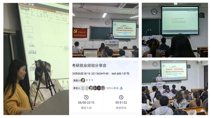 我院历来重视、支持学生通过考研继续求学深造。据悉,为合理平衡学生实习与考研的关系,我院毕业实习已实行分批次开展,首批次学生实习于11月中旬进行,第二批次学生实习于1月份开始,既满足了学生备考的时间需求,又为学生实习与就业提供了充足的保障。本次生物技术与生物科学专业联合举办此次考研、就业实习经验分享活动,充分体现了生物类专业优良的传承和底蕴,以及专业教师与同学对未来考研与就业再创辉煌的美好期盼。相信,师生齐心,未来一定可期!