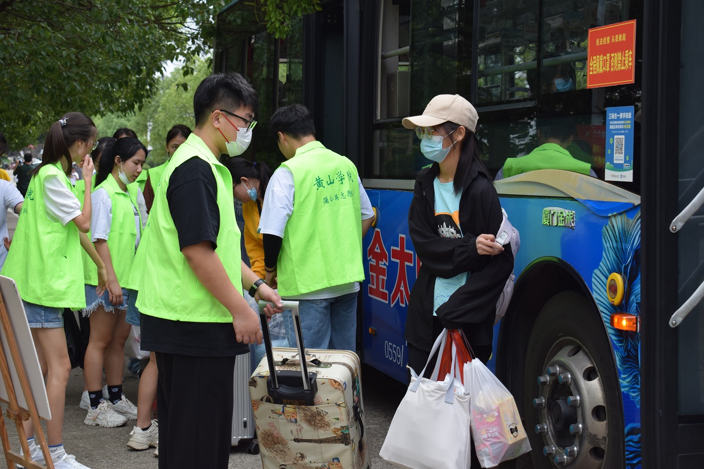 9月3日当天,新生陆续到校。太阳成集团tyc7111在入校通道、校园摆渡车停车点、宿舍楼栋、志愿者接待点、报到处等地点均安排党员教师和志愿者帮助新生搬运行李,协助他们做好登记和注册报到等工作。
