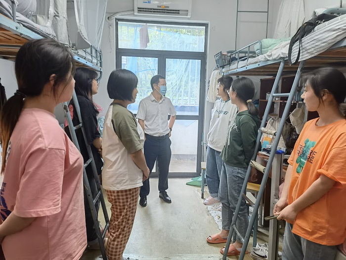 走访中他们详细地了解新生入学报到情况,及时帮助同学解决了存在的困难,鼓励新生尽快融入校园,认真对待接下来的学习生活,同时叮嘱同学们要保证自身安全,做好疫情防护,提高警惕,远离校园诈骗。关切的话语饱含着动人的师生情意,院领导的关怀让全体新生倍感温馨。