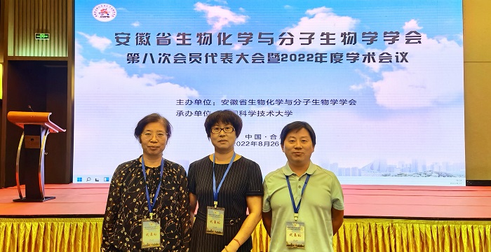 为促进安徽省生物化学与分子生物学领域专家的交流与合作,8月26-28日,由安徽省生物化学和分子生物学学会主办、中国科学技术大学承办的安徽省生物化学与分子生物学学会第八次会员代表大会暨2022年度学术会议在合肥成功举办,来自全省的11个地市、21个高校和研究所的126名代表参加了此次盛会。我院柏晓辉和胡晓倩老师、化工学院王爱东老师应邀参加了本次会议。