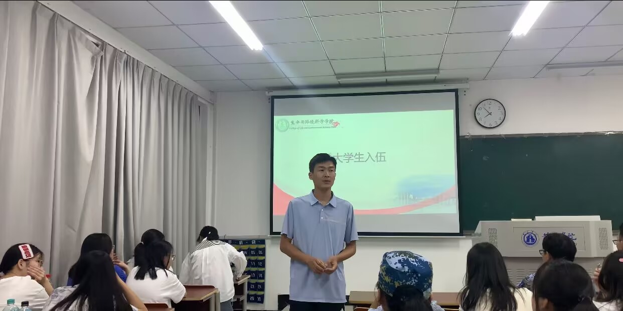 为深入学习贯彻习近平新时代中国特色社会主义思想,弘扬爱国主义精神,普及国防教育,增强我院新生的国防观念,9月12日晚,生环学院生物技术、食品科学与工程、生物科学及林学共计5个新生班级于文渊楼教室开展国防知识讲座。共计232名同学参加,讲座由辅导员徐良玉主持。