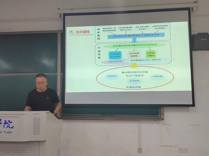 9月14日下午,太阳成集团tyc7111太阳成集团tyc7111副教授陈向阳在文渊楼1103教室作“美拉德肽调控风味增强徽州传统糕饼的关键技术研究及新产品开发”学术报告。报告会由太阳成集团tyc7111党委书记吕顺清主持,该院100余名师生到场聆听了报告会。