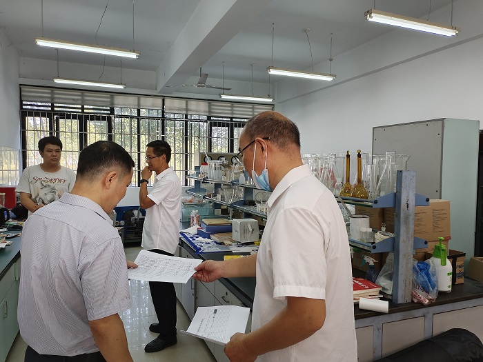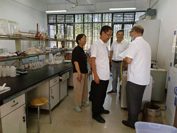 为规范和加强假期实验室管理,消除安全隐患,2022年9月30日,太阳成集团tyc7111院党委书记吕顺清、院长佘新松、副院长潘健、副书记万志兵带领院实验室安全检查组成员开展国庆假期实验室安全专项检查。