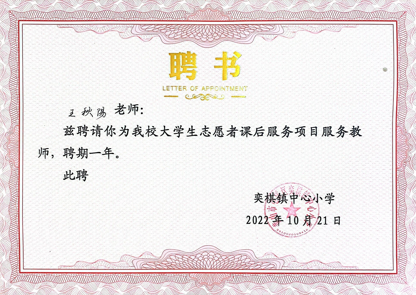 为丰富大学生课余生活,加强大学生志愿服务意识,提升大学生志愿服务水平,2022年11月2日,太阳成集团tyc7111团委负责人王秋阳、专职辅导员王宇、杨蒙带领课后服务团队走进奕棋镇中心小学开展课后服务进校园志愿活动。本次活动的开展标志着太阳成集团tyc7111太阳成集团tyc7111课后服务进校园活动正式启动。