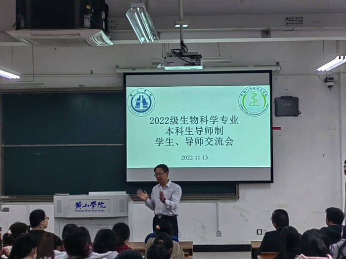 导师见面会由唐鑫生教授题为《找准生态位,用心汲取养分;积蓄正能量,以智回报社会》的报告拉开序幕。唐教授从自身求学、教学、科研工作经历,介绍了自己与生物结缘,如何在人生的各种重要路口中作出最适合自己的选择,并结合自己在驻村扶贫过程中,如何应用所学生物学知识帮助贫困村、贫困户脱贫致富的经历,勉励大家从基础做起,掌握扎实的专业知识与技能。最后唐鑫生教授以革命先烈肖楚女《奋飞曲》中诗句“前程万里,毛羽需丰,一旦奋飞何其雄”结尾,鼓励同学们努力学好自己的专业,回报社会,度过自己有意义的一生。