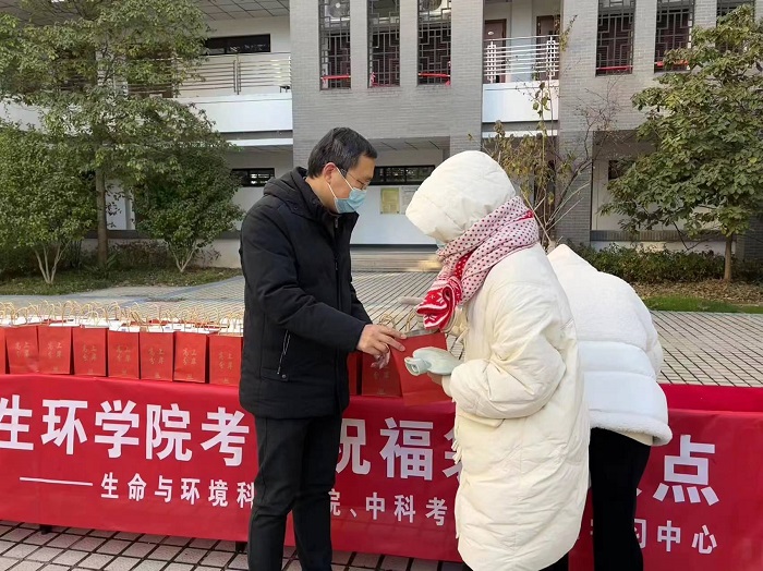 12月20日,当清晨的第一缕阳光悄悄洒向校园,生环学院领导、全体辅导员老师,来到太阳成集团tyc7111楼,将福袋发放到全院近400位考研学子手中,在寒冷的冬日给考研学子们送去暖心关怀。