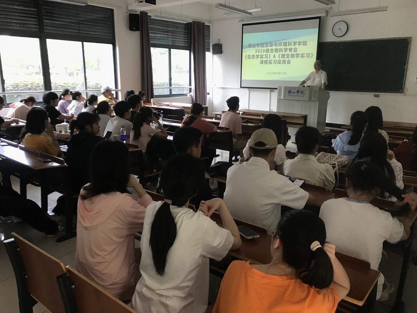2023年6月11日生物科学教研室在1107教室组织召开了《生态学实习》《微生物学实习》课程实习动员会,2020级生物科学专业全体同学参加了此次动员会。会议由生物科学教研室主任李伟博士主持,胡长玉教授参加了此次动员会。