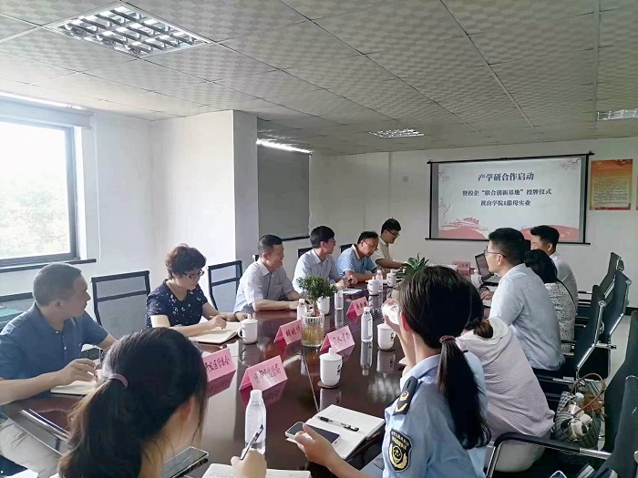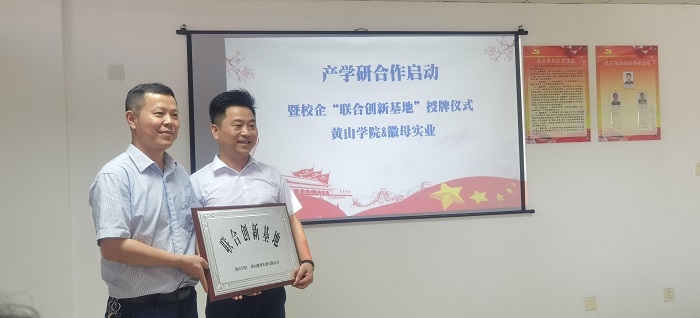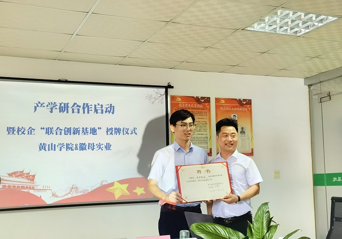 会后,佘新松一行到黄山徽母实业有限公司进行实地考察。企业总经理汪洋详细介绍了公司发展历程和今后主营业务板块,双方就校企合作项目、人才需求、臭鳜鱼产业现状及急需攻克的技术难题等方面情况进行深度交流。校企双方现场签约了横向项目《臭鳜鱼腌制发酵控制和产业化加工技术开发》,并为吴永祥博士颁授了“科技副总”聘书。佘新松为徽母实业公司授牌了“校企联合创新基地”,并指出,希望双方充分利用校企合作平台,发挥各自优势,实现深度融合,共同推动臭鳜鱼发酵控制技术开发项目的实施。