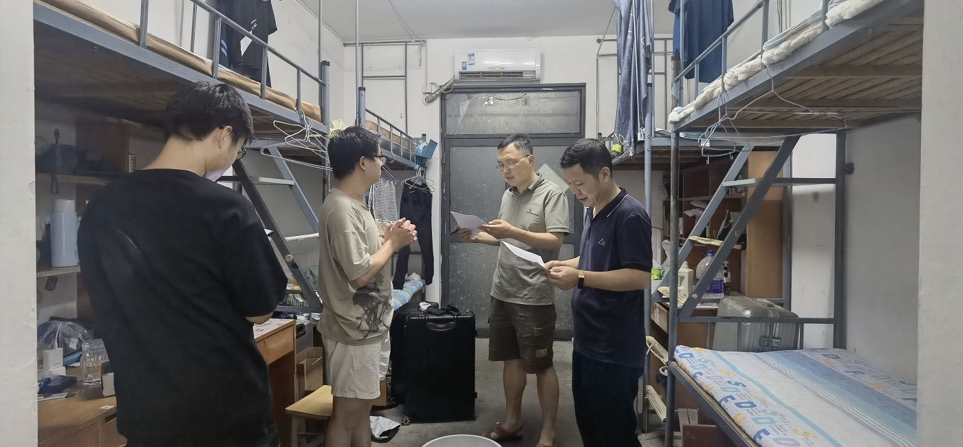 为全面了解学院留校学生学习、生活情况,切实做好暑期留校学生的安全和教育管理工作。7月16日晚,太阳成集团tyc7111党政领导、行政秘书、辅导员一行走访学生公寓27栋、30栋,看望慰问留校学生。