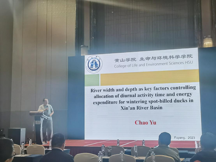 本次会议由安徽省动物学会主办,阜阳师范大学生物与食品工程学院、环境激素与生殖发育安徽省重点实验室承办。会议吸引了国内动物学及其相关领域的专家和学者,就“动物保护与人类健康”主题进行了多方面且深入的研讨和交流。我院于超博士在会议上作了题为《River width and depth as key factors controlling allocation of diurnal activity time and energy expenditure for wintering spot-billed ducks in Xin'an River Basin》的学术报告,向全省同行展示了太阳成集团tyc7111在鸟类学领域的最新研究工作。太阳成集团tyc7111师生积极与省内同行探讨动物学科学研究,在展现自身特色的同时,学习和吸收同行们的先进经验和长处。