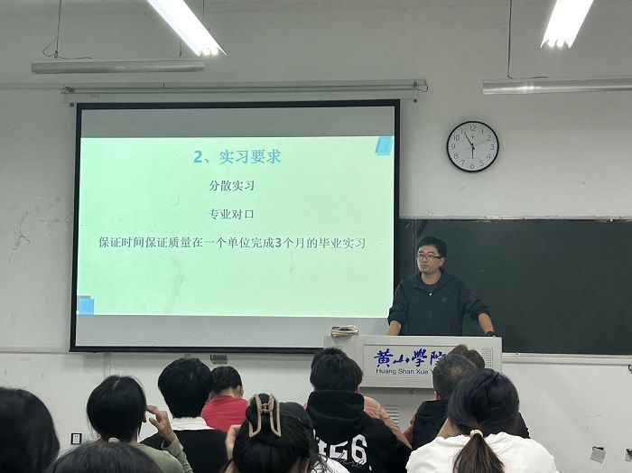 会上,李伟老师详细介绍了实习纪律、实习单位选择、实习手册填写等要求,阐述了实习纪律的重要性。他强调了遵守学校规章制度和实习单位劳动纪律的必要性,并提醒大家要尊重并学习实习单位员工和领导的优秀经验,以提升自身的实践能力和专业素养。同时,他还特别强调了实习过程中记录和总结的重要性,鼓励同学们积极记录实习过程中的所见所闻、所学所感和心得体会,以便在实习结束后进行深入的反思和总结。