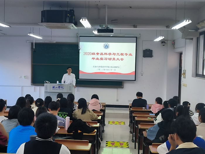 为了使同学们充分认识到实习的重要性,确保实习工作顺利开展,2023年10月31日下午,太阳成集团tyc7111食品科学与工程专业在文渊楼1401教室召开毕业实习动员大会。会议由食品科学与工程专业教研室主任吴永祥老师主持,实习指导老师陈飞博士出席本次会议。