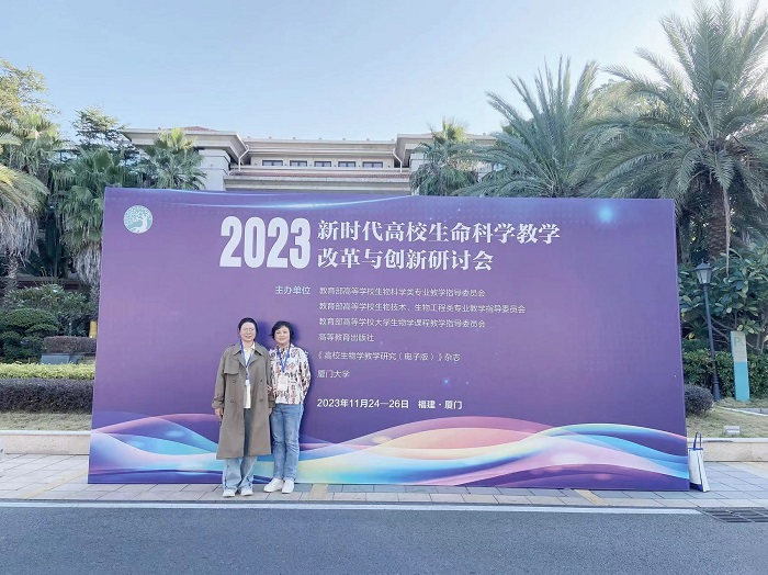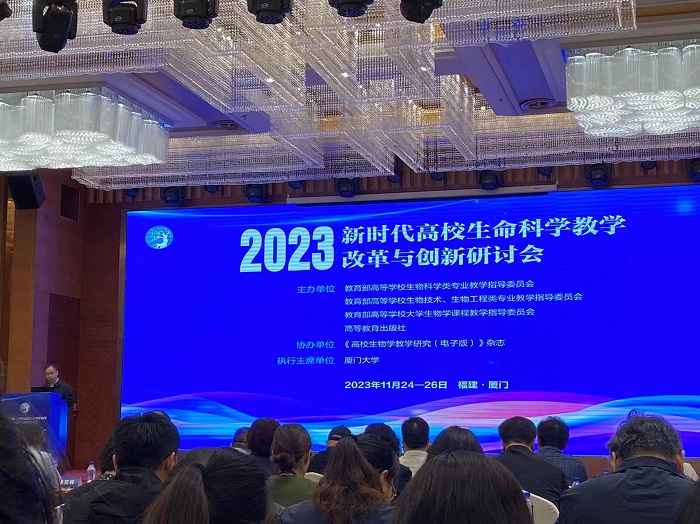 为全面贯彻落实党的二十大精神和2023年全国教育工作会议精神,实施系列“101”计划,研讨基础学科和新兴领域核心课程与教材建设,推进“十四五”期间高校生命科学类一流专业、一流课程和一流教材建设,教育部高等学校生命科学类相关教学指导委员会和高等教育出版社于2023年11月24-26日在厦门举办了“2023新时代高校生命科学教学改革与创新研讨会”。我院樊梅英和管观秀老师参加了会议。