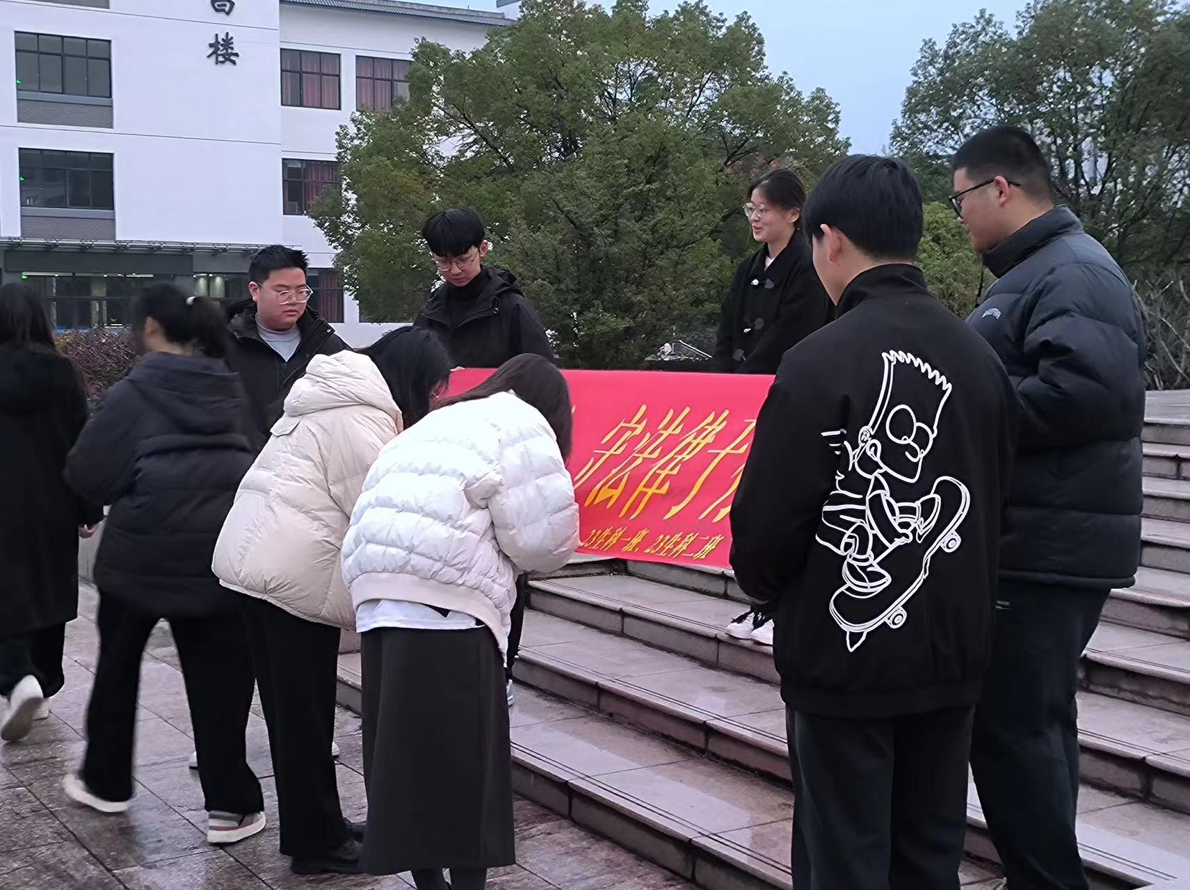 随后,2023级生物科学2班黄刚作为代表在国旗下讲话,他呼吁作为新时代的大学生要主动学习宪法理论,坚定宪法信仰、加强宪法实践,坚决维护宪法,共同营造知法、懂法、守法、护法的良好校园氛围。同时,2023级生物科学专业陈鹏宇、潘静怡、凌健全、焦雨欣等八位同学在国旗下为全体师生朗诵《宪法之歌》,“独我人民,保我国权,唯我宪法,护我尊严,人民至尊,宪法至上,我大中国永垂鉴。”铿锵有力的声音响彻校园。最后,同学们纷纷在“知宪法于心,守法律于行”横幅上签字,表示作为新时代的大学生要自觉肩负历史使命,与时代同行,努力学习专业知识、积极宣传宪法,争做知法守法护法的表率。