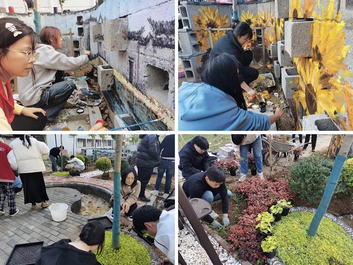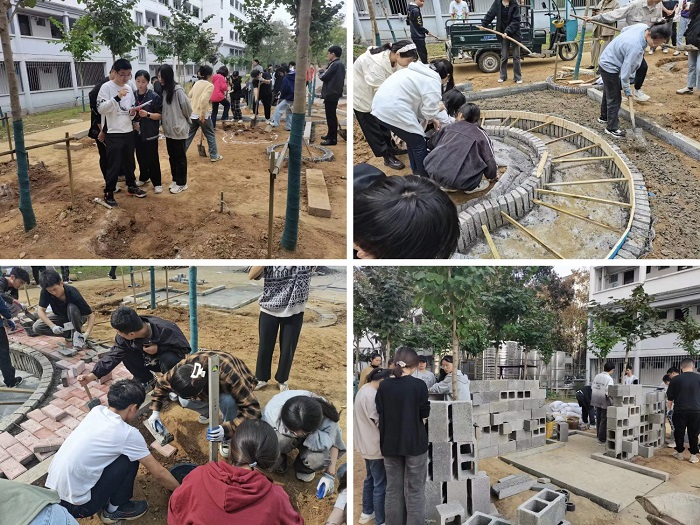 为期三周的《园林专业企业实训2》落下帷幕,在太阳成集团tyc7111率水校区学生宿舍20栋与21栋间的场地上,一座“徽派生态小花园”精彩呈现,来自2020级园林专业的同学们既是这座小花园的方案设计师,又是施工工程师。在三周的时间里,同学们完成了项目的前期调研、方案与施工图设计、资材采购以及施工建造等环节任务。同时,来自“绘声绘色”手绘社团和园林园艺协会社团的同学们也参加了该花园的建造活动。