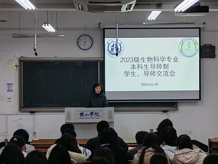 2024年1月9日晚在文渊楼1201教室,生物科学专业召开了第二次2023级本科生导师交流会。生物科学教研室全体教师和23级生物科学专业全体学生参加了见面会。见面会由基础教研室主任樊梅英老师主持。
