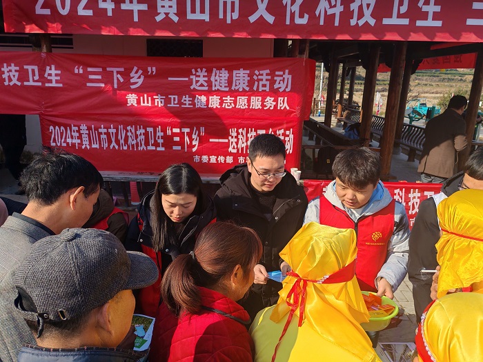 2024年黄山市文化科技卫生“三下乡”集中活动分别于1月17日在屯溪区屯光镇和1月28日在黄山区太平湖镇举行,安徽省乡村振兴协同技术服务中心成员崔谱博士应市科技局邀请参加此次活动。