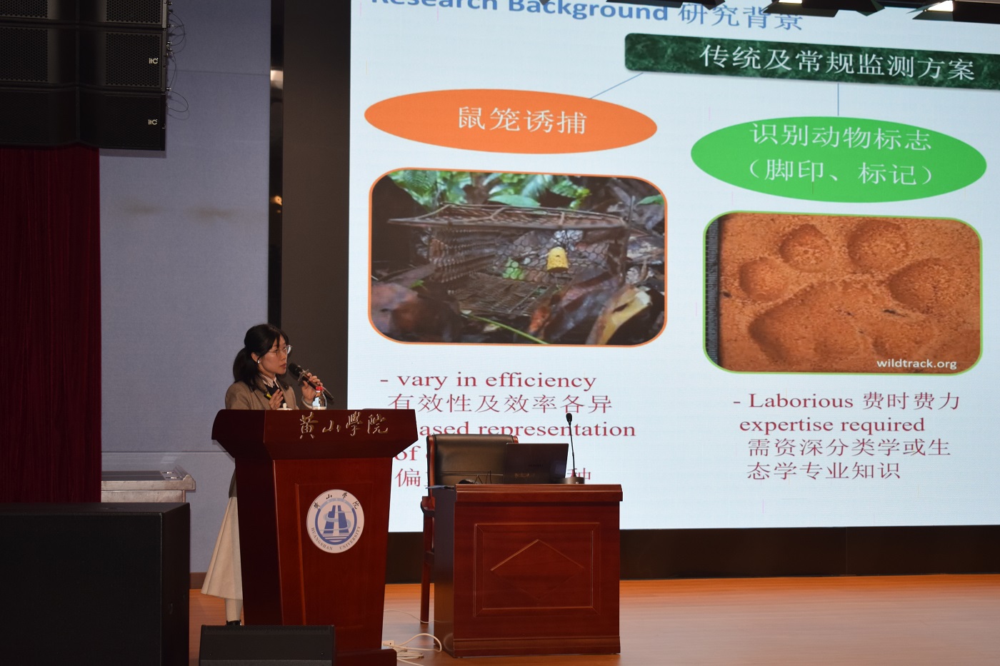 紧接着,李冰欣副教授带来了题为《基于绿头蝇源性DNA方法探究哺乳动物多样性》的报告。她着重讨论了传统哺乳动物监测方法的局限性,并展示了如何利用绿头蝇源性DNA进行更有效的物种监测。李冰欣副教授结合野外研究和分子生物学实验数据,阐述了新方法在揭示隐蔽物种和进行生物多样性评估方面的应用前景。