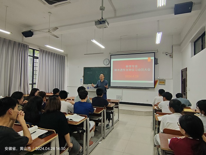 2024年4月28日在文端楼2101教室召开了《林木遗传育种》课程实习动员会,会议由万志兵教授主持,林学教研室李晓毓、2022级林学专业全体学生参加此次会议。