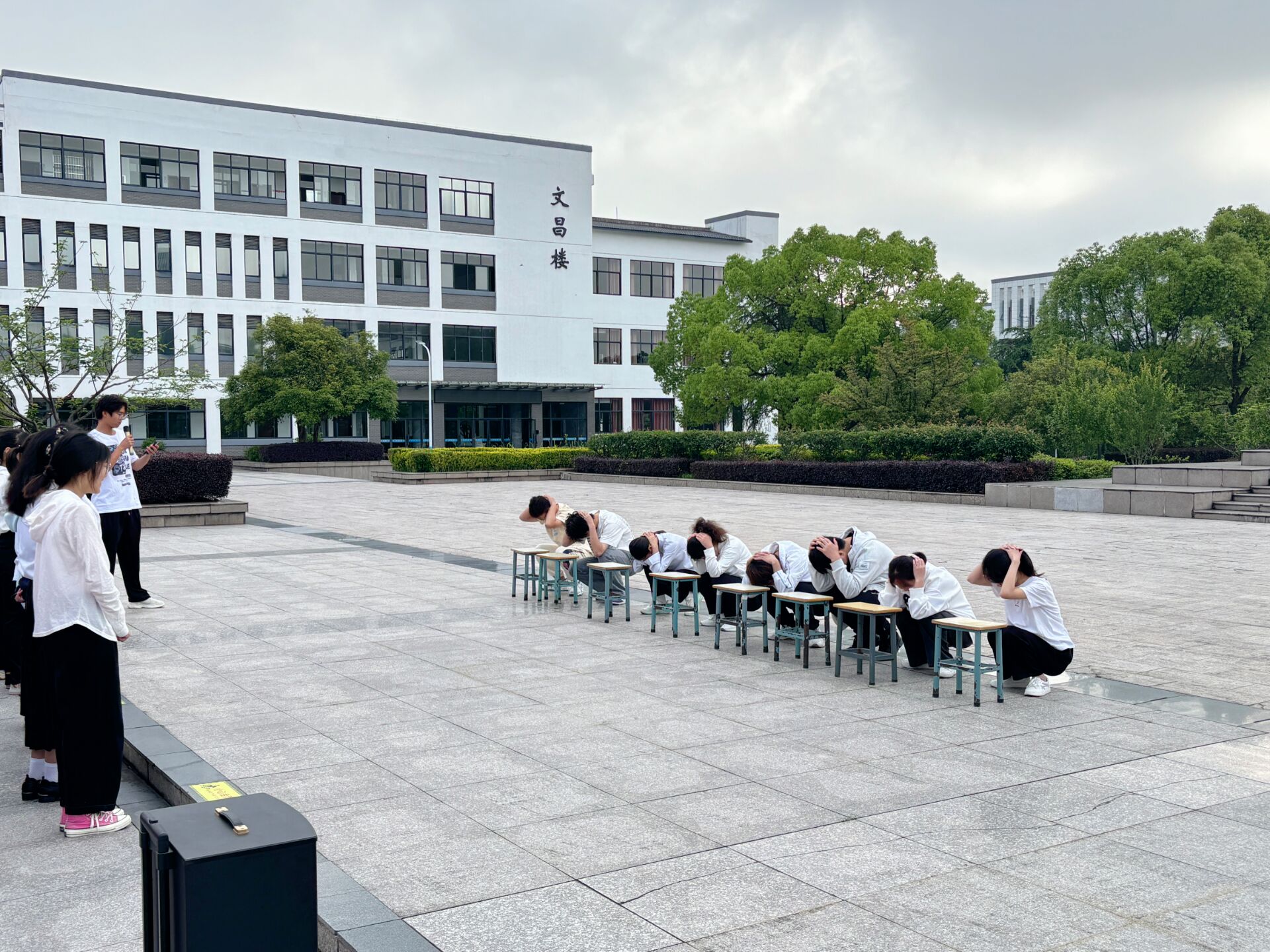 随着国歌的激昂奏响,五星红旗缓缓升起,全体师生肃立敬礼。升旗仪式结束后,23食品1班宋靓同学作为班级代表向同学们宣传了防灾减灾知识,提醒同学们一定要时刻加强安全意识,努力增强自我防范能力。接着,王祥、李文静、张晨曦等八位同学作为班级代表通过情景模拟形式向同学们演示地震来临时如何紧急避险。按照演练方案,警报响起后,同学们迅速作出反应,第一时间双手护头,快速寻找掩体,降低身体重心,撤离警报拉响后,同学们迅速行动,配合默契,大家弯腰抱头,以最短的时间按预设的撤离路线快速、有序地撤往空旷的集合地并清点人数。演练结束后,陈赟赟同学表示,作为新时代的青年大学生,我们应当珍惜生命,努力学习,成为有责任感、有追求的新时代青年。